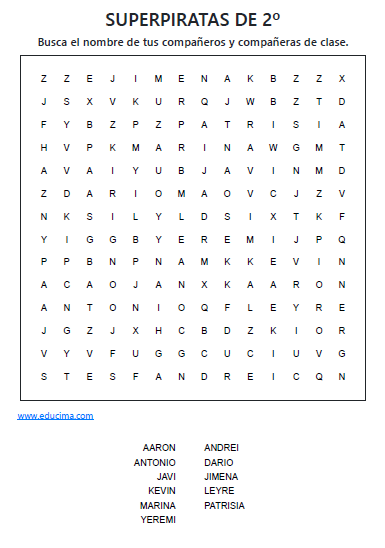 Tenéis que buscar vuestros nombres y los de vuestros compañeros y compañeras de clase.